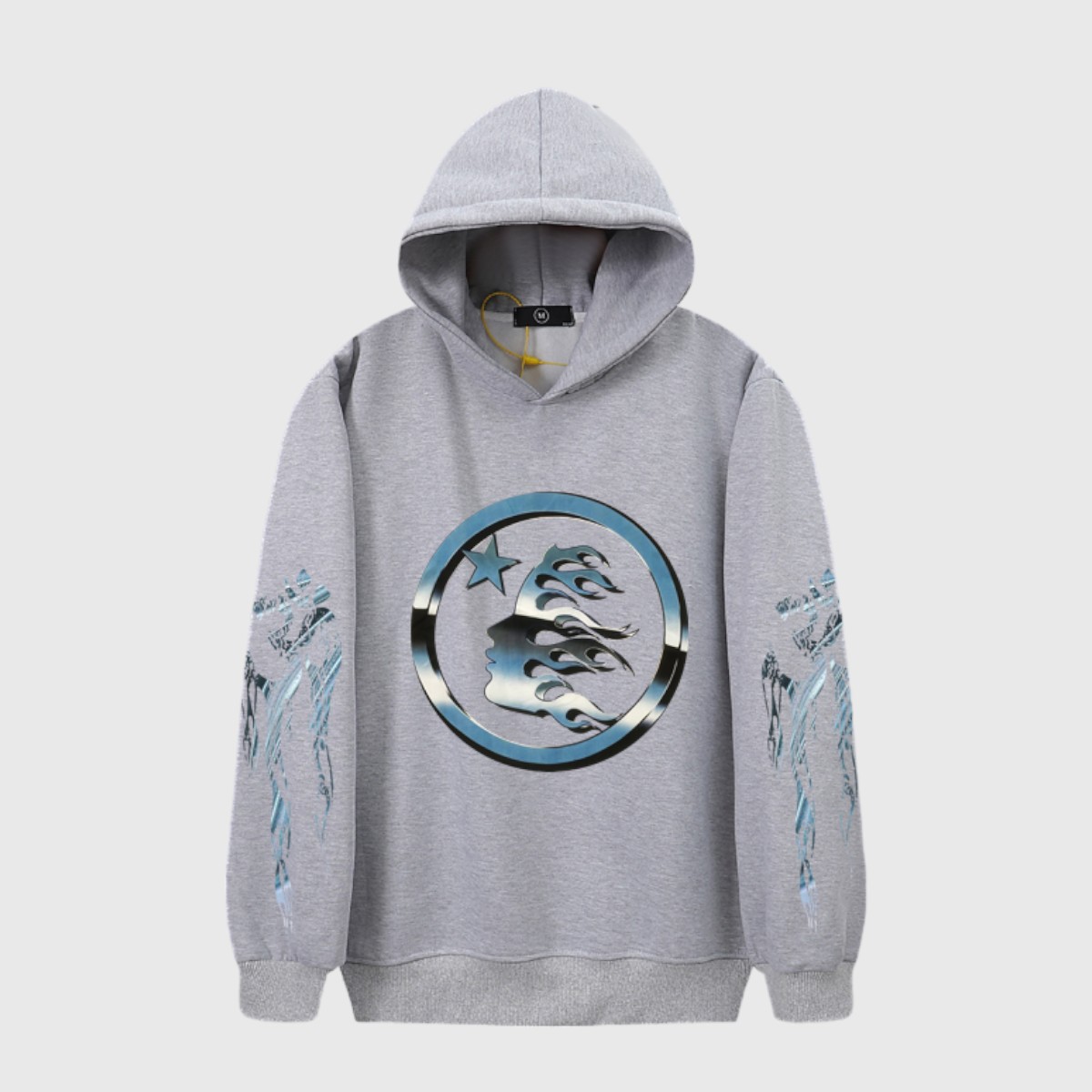 The Grey Hellstar Hoodies feature a classic hoodie style, making it perfect for anyone seeking a comfortable and practical piece of clothing.