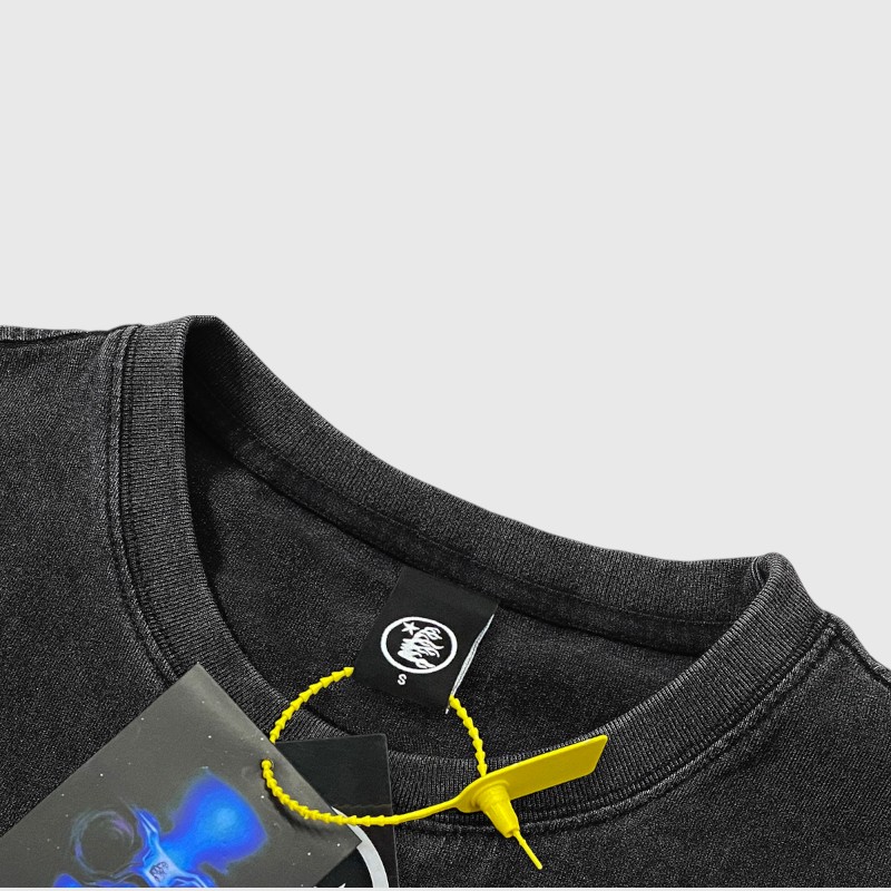 - Premium Washed Black Cotton: Crafted from high-quality, soft, and durable cotton, this Hellstar T-shirt features a distinctive washed black finish. This gives it a vintage, pre-worn look and an incredibly soft feel right from the first wear, ensuring both comfort and a unique aesthetic that ages beautifully. This authentic Hellstar apparel boasts a sought-after distressed effect.