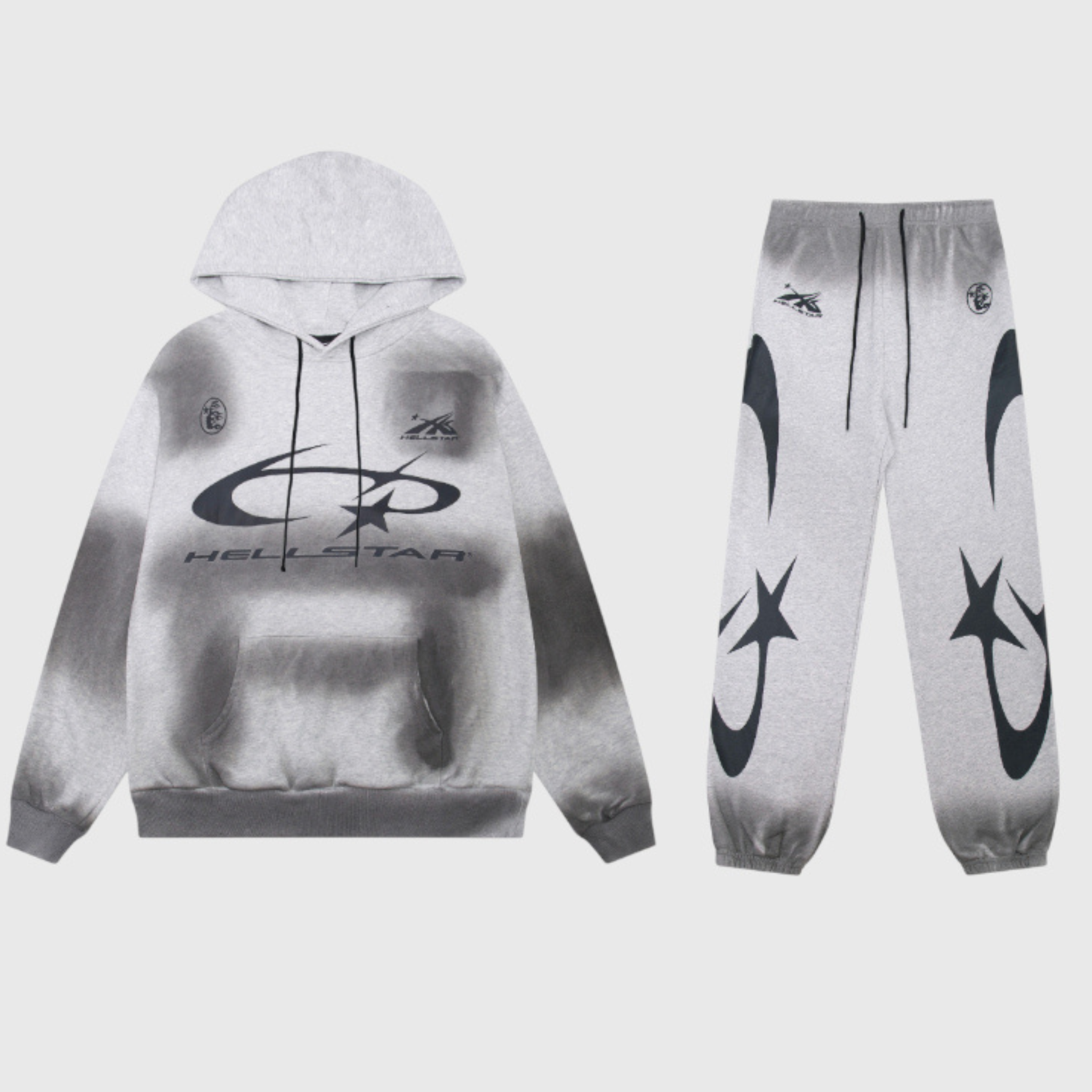 Cohesive Graphic Prints: Features matching, bold Hellstar graphic prints across both the top and bottom for a unified, statement-making look.