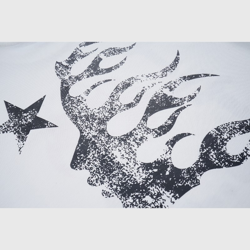 • Authentic Hellstar Branding: The Hellstar logo is prominently displayed in white at the bottom right of the graphic, affirming the authenticity and quality of this official Hellstar merchandise. There’s also the Hellstar neck tag.