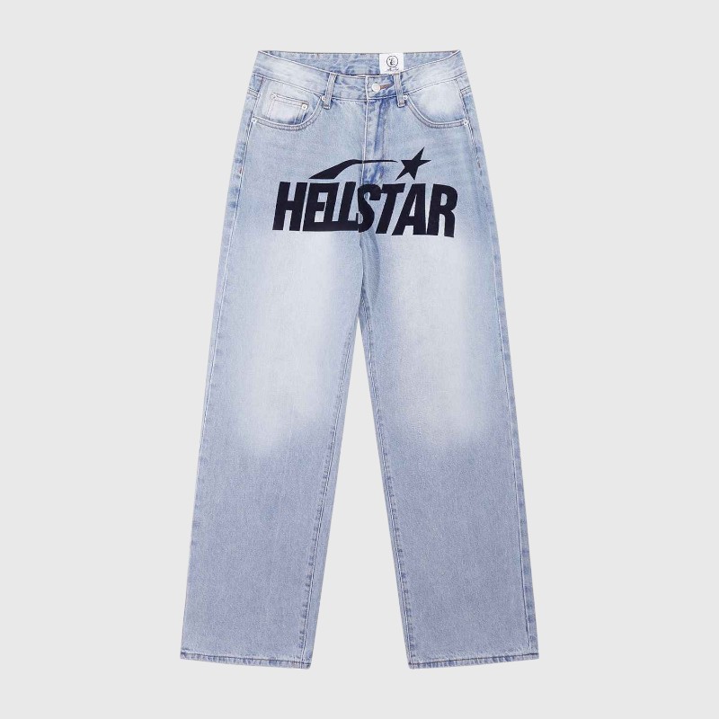 - Bold Hellstar Logo Print: Featuring prominent Hellstar branding, these graphic jeans immediately showcase your connection to the underground scene. The distinctive logo print adds an edgy, authentic touch that sets them apart from ordinary denim.