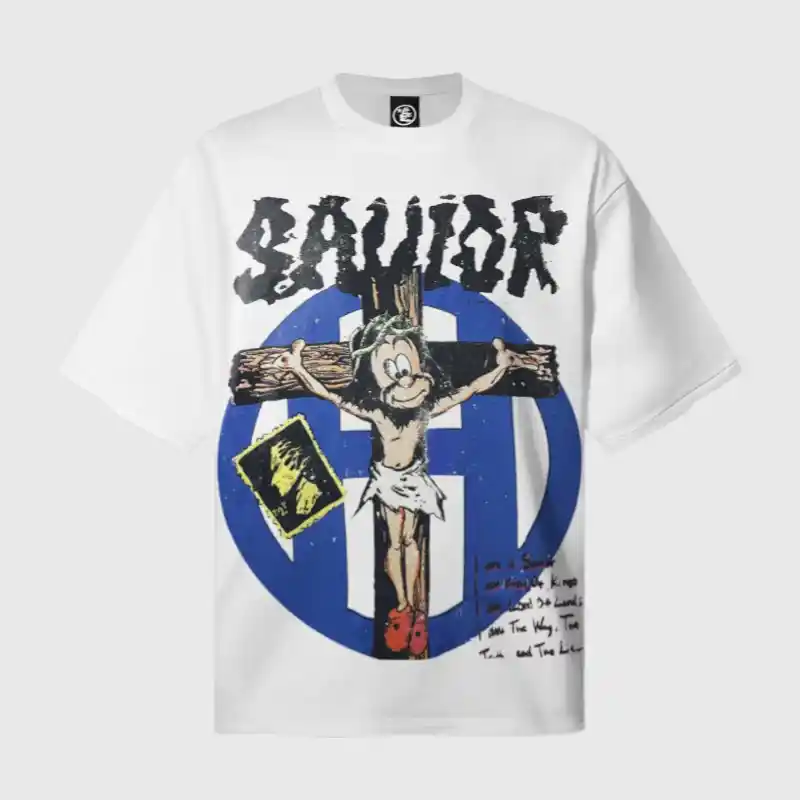 - Bold Graphic Print: Features a striking “Savior” graphic that makes a powerful fashion statement.