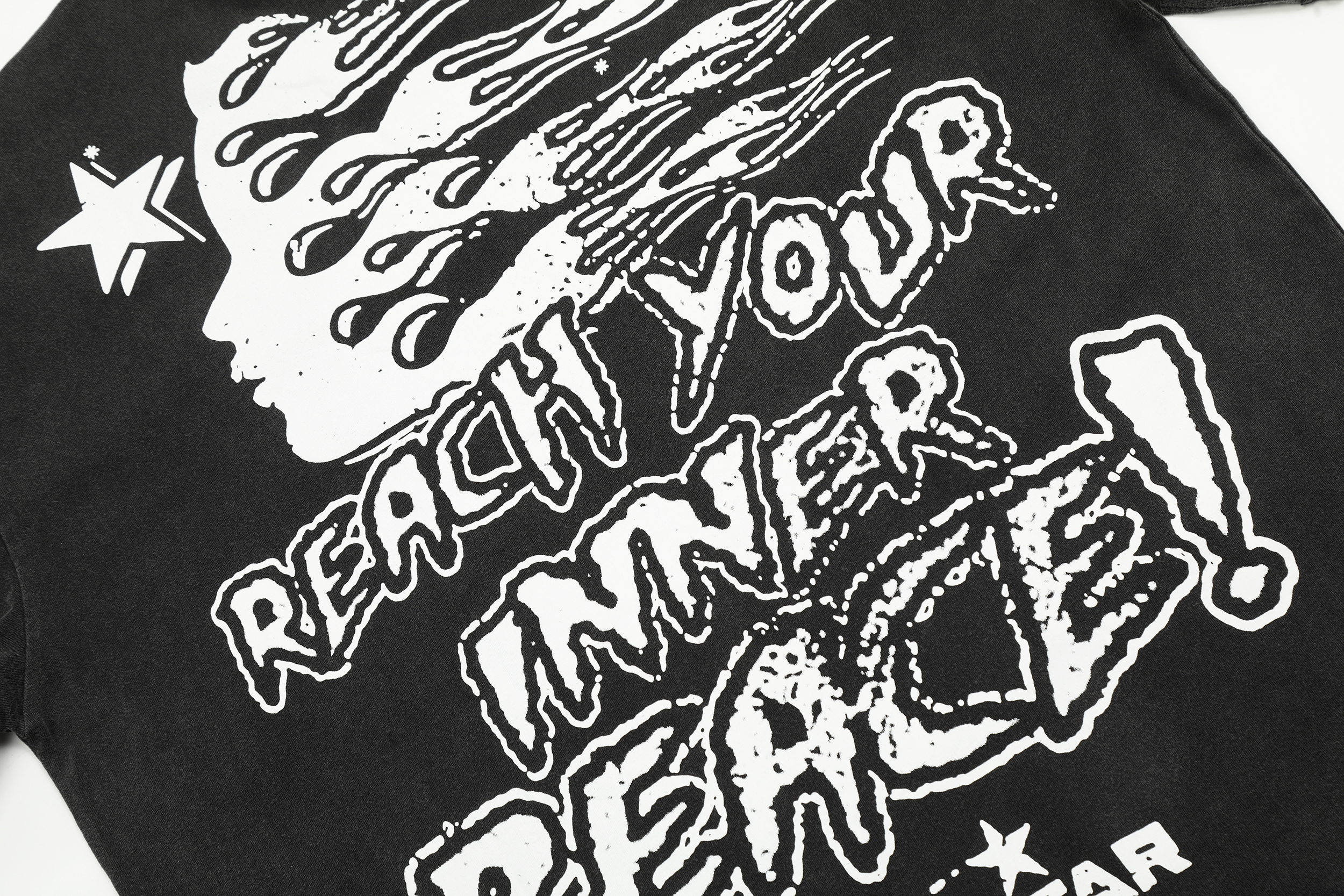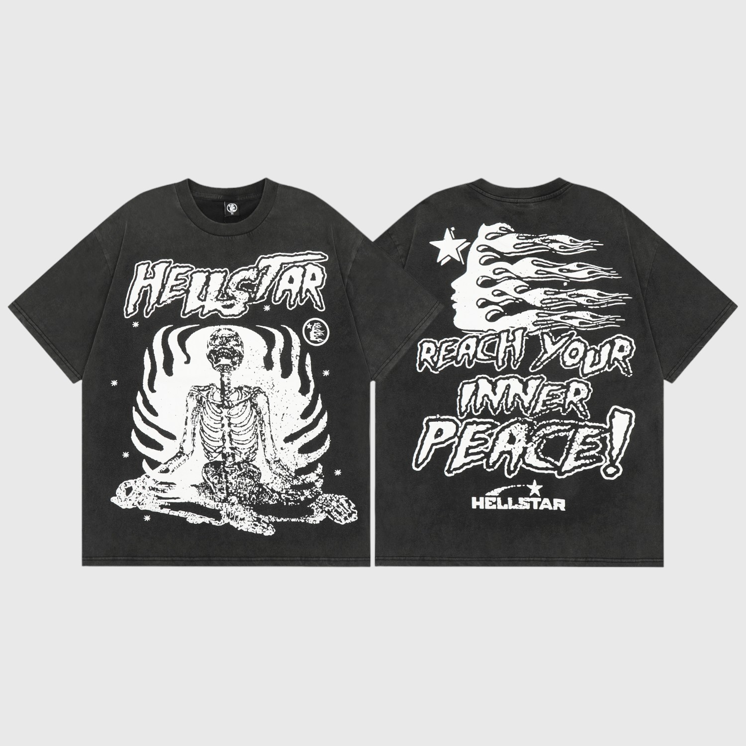 Achieve ultimate balance between style and serenity with the Hellstar Reach Your Inner Peace Washed Black Tee. This distinctive tee blends a washed black fabric with Hellstar’s signature bold graphics, creating an effortlessly cool, worn-in look. The centerpiece of this shirt is the “Reach Your Inner Peace” graphic, embodying the perfect harmony between edgy streetwear and thoughtful design. Crafted from premium cotton, this tee is designed for long-lasting comfort and style, making it a go-to choice for your everyday streetwear collection. The washed black color gives the shirt a vintage, lived-in feel, perfect for those who love a rugged yet refined aesthetic. Pair it with distressed jeans or joggers for an effortlessly casual, stylish look. Whether you’re hitting the streets or chilling with friends, this tee will elevate your streetwear game while reminding you to embrace your inner peace.
